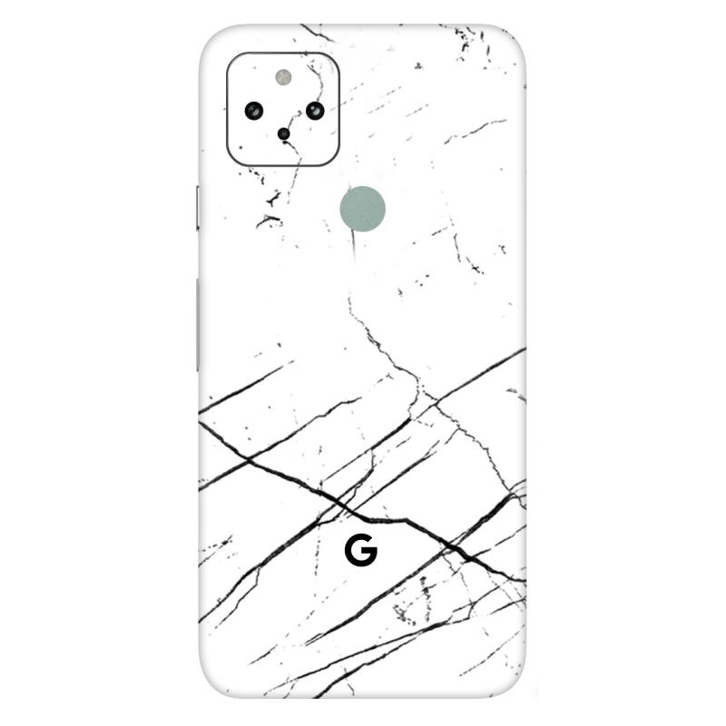 Pixel 4A Skins & Wrap – White Marble Black Strip