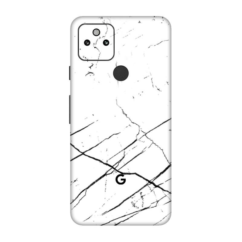 Pixel 5A Skins & Wrap – White Marble Black Strip